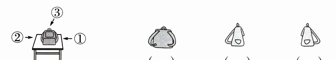 6. 下面三幅图分别是在哪个位置看到的?先把编号填在相应的括号里,再用自己的书包试一试。