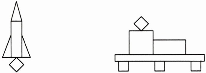 7. 奇思用学过的图形设计了下面两幅图,请你帮他把图中的长方形涂上黄色,正方形涂上红色。