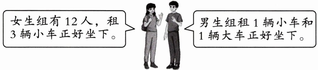 6. 一辆大车限乘 7 名乘客。根据下面的信息,算一算男生组有多少人。