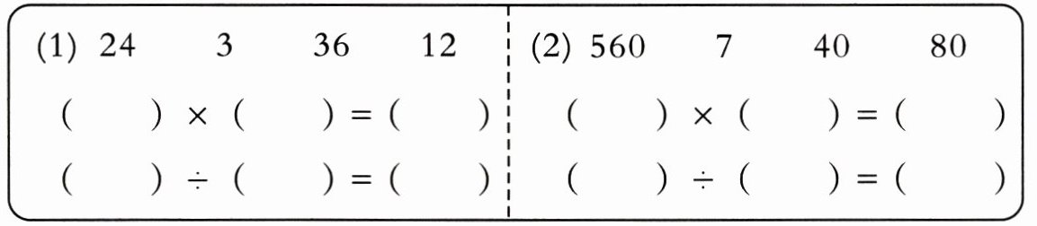 5. 选 3 个数写一道乘法算式和一道除法算式。(可以把选中的数先圈起来)