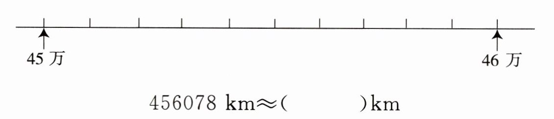 (2)一辆出租汽车已经行驶了456078km,请你在数线图上标一标,再四舍五入到万位。