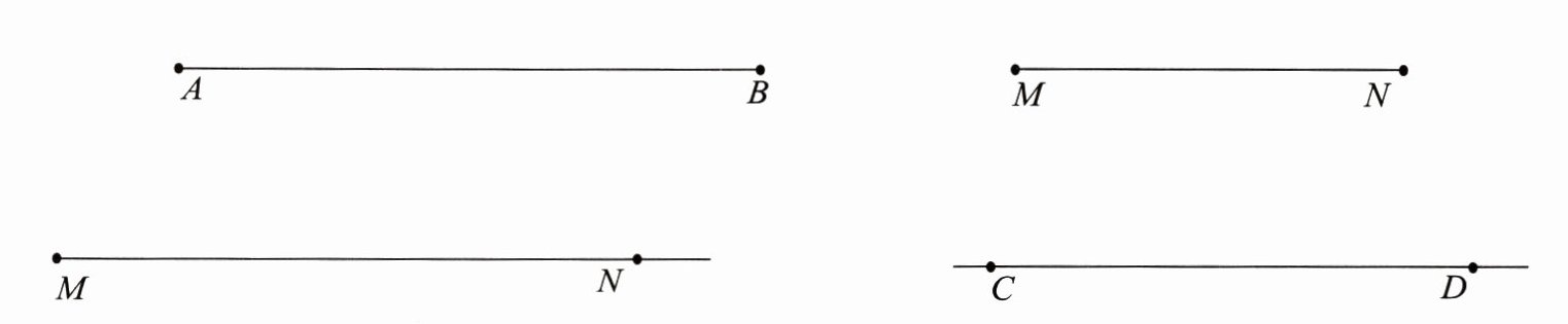 画两条定点M、N,并用直尺连接两点,形成线段MN(两端有端点)。