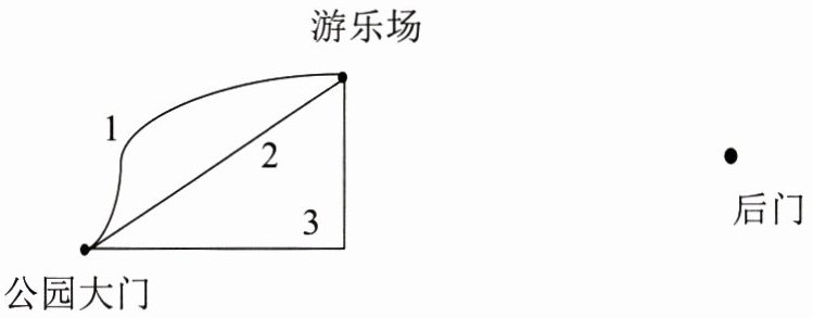 (1)从公园大门到游乐场有3条路,第______条路最近,因为两点之间所有连线中______最短。