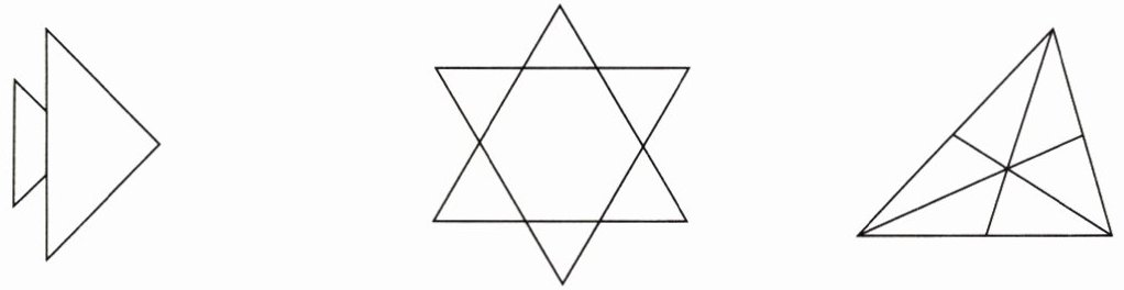 (1)在下面各图中找出两组相交的线段,并用不同颜色的笔描一描。