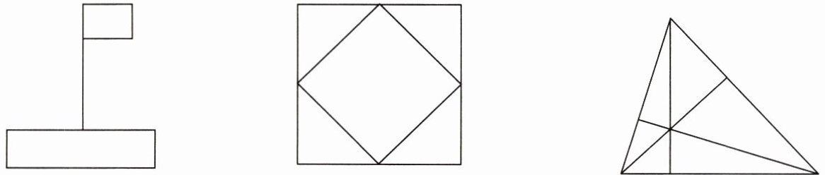 第一幅图:旗杆与底边的线段互相垂直,画上直角符号;