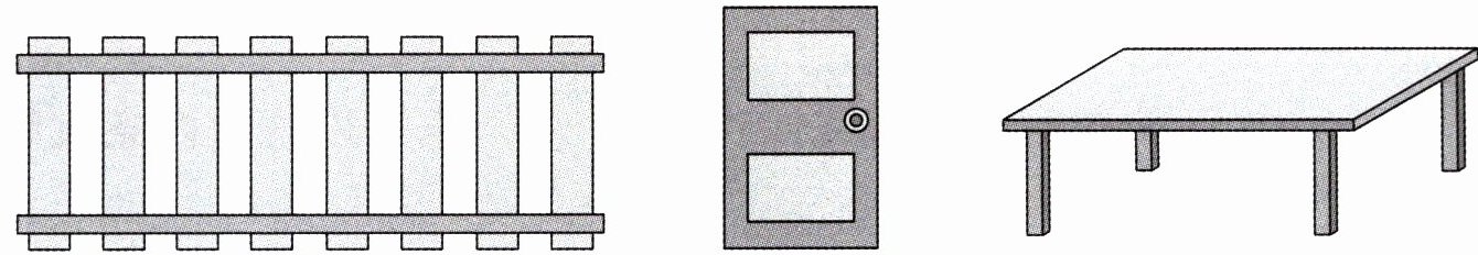 1. 栅栏图案中,所有的竖直线条为一组平行线,所有的横向线条为另一组平行线,用颜色描出任意一组或几组平行线。