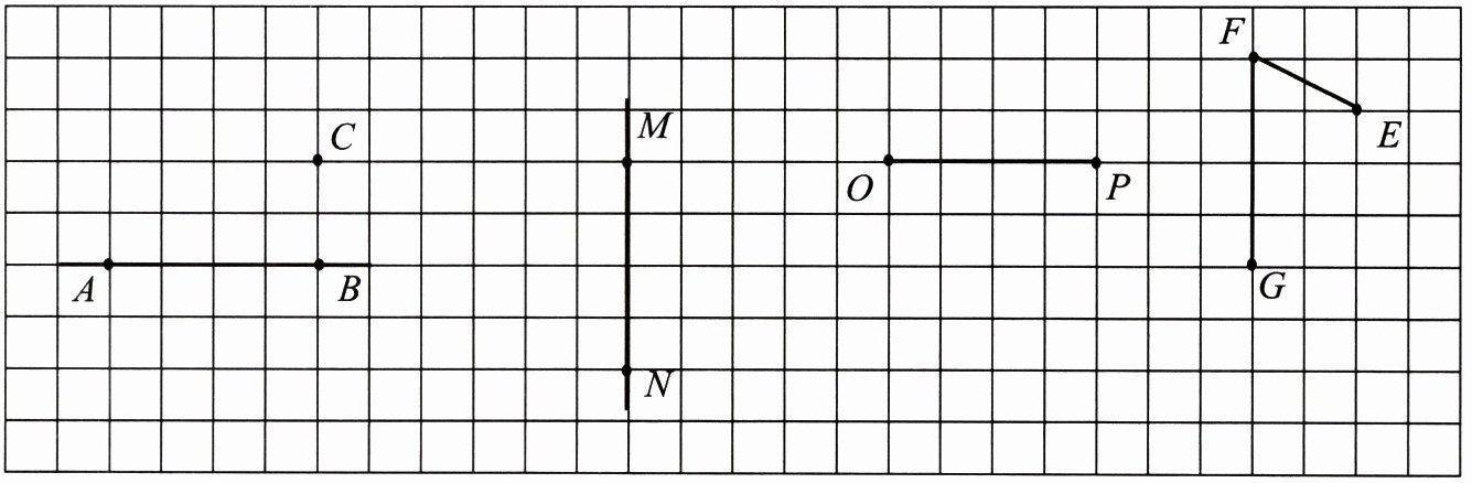 从点 $C$ 出发,向右水平绘制直线,与 $AB$ 平行,经过 4 个方格。