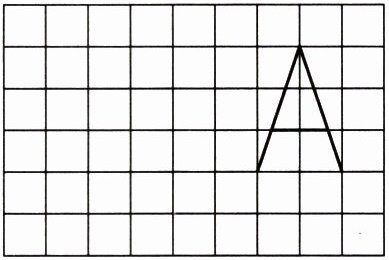 原字母A顶点位置:(假设原顶点为(7,2), (8,4), (9,2))