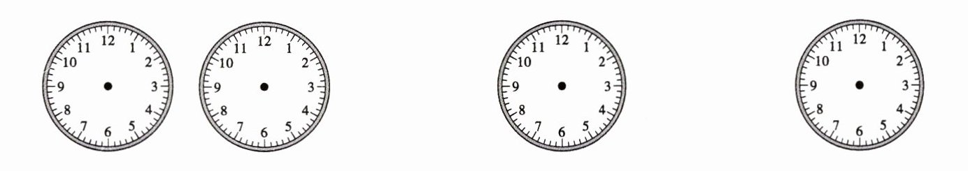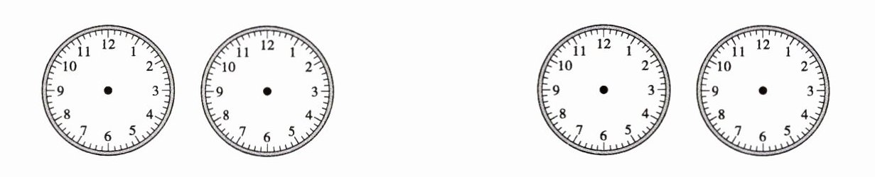 4. 在钟面上,时针和分针形成了一个角。随着指针的转动,角的大小也会发生改变。请你拨一拨,观察一下,几时整,时针和分针会形成下面的角?把它们画下来。