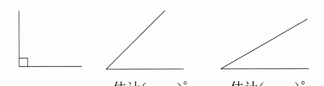 2. 根据给出的已知角,画一画,估一估右边两个角的大小。