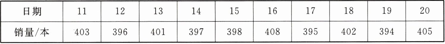 | 销量/本 | 403 | 396 | 401 | 397 | 398 | 408 | 395 | 402 | 394 | 405 |