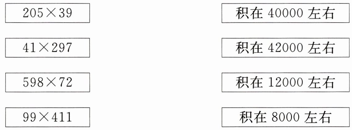 $205×39$-积在8000左右;$41×297$-积在12000左右;$598×72$-积在42000左右;$99×411$-积在40000左右。