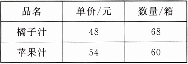 |品名|单价/元|数量/箱|