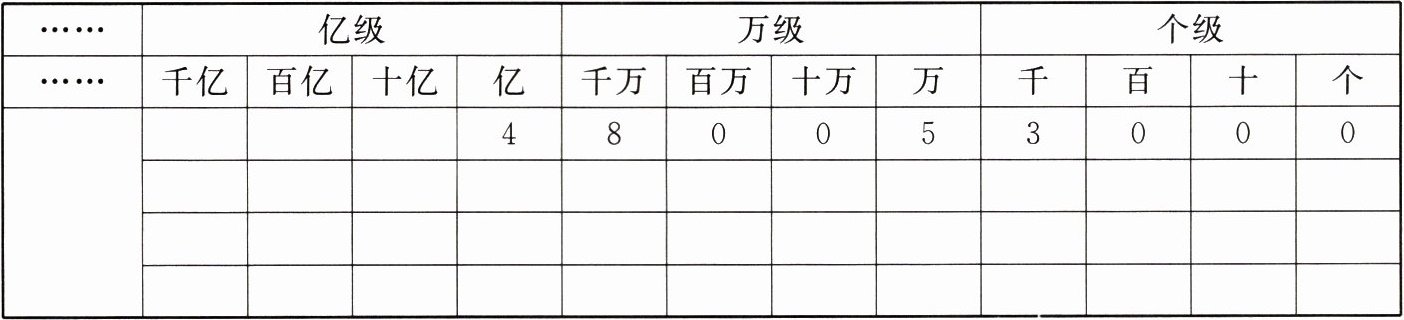 3. 先用“·”找出分级单位,再在数位顺序表中写出下面各数。想一想,填一填。
