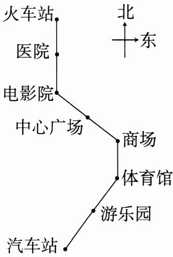 (2)从商场向西北方向行驶2站到达电影院,再向北行驶2站到达火车站