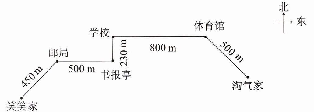 (2)笑笑从家向______走______m到______,然后向______走______m到______,再向______走______m到学校。
