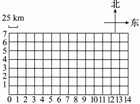 (3)75÷25=3(格),汽车向北行驶1 h后的位置为(11,5)