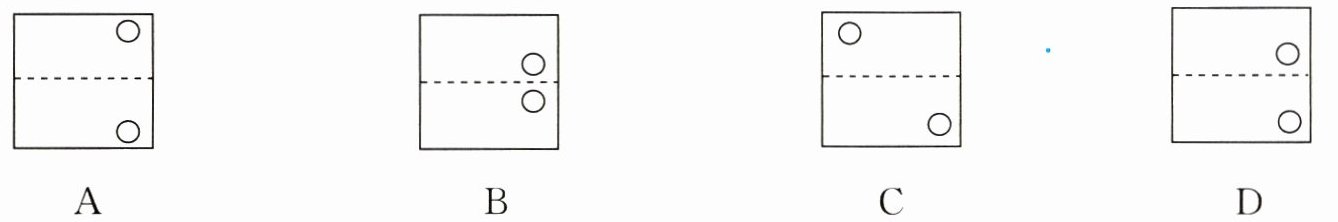 照左图,在一张沿虚线对折了的纸上打一个小圆孔,展开后的样子是(