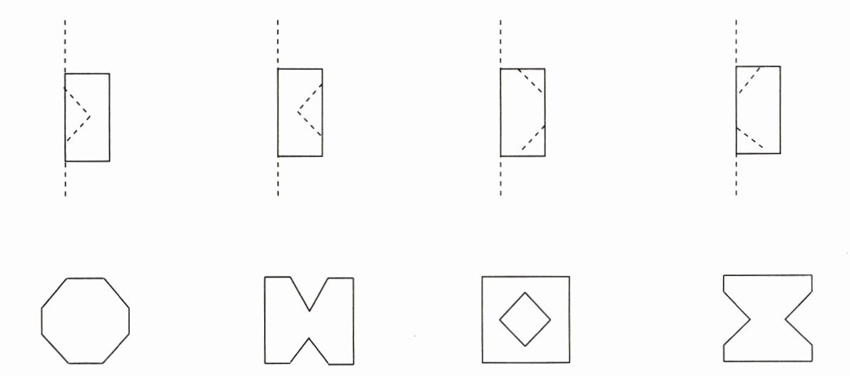 ,沿虚线剪下,剩下的纸打开后是什么图形?连一连。
