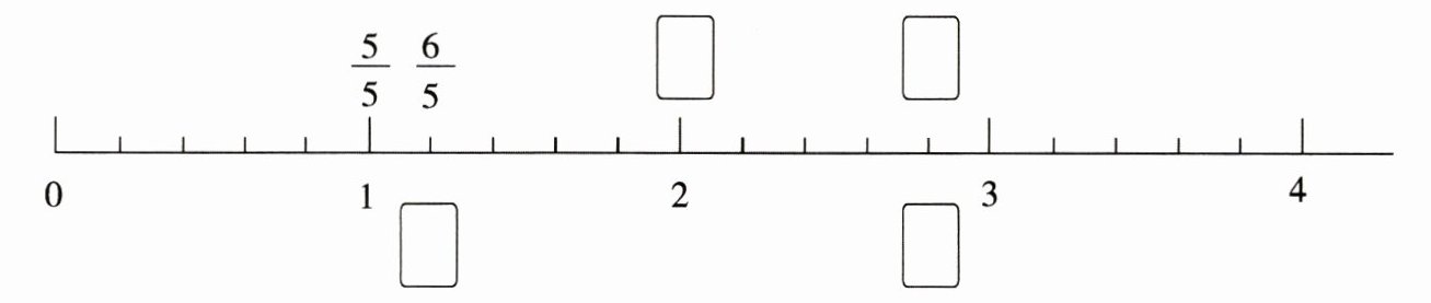 6. 在上面的$□$里填上适当的假分数,在下面的$□$里填上适当的带分数,并完成填空。