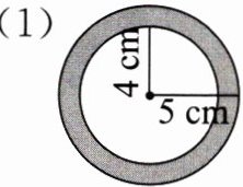(1)$(5^{2}-4^{2})× 3.14=28.26(cm^{2})$