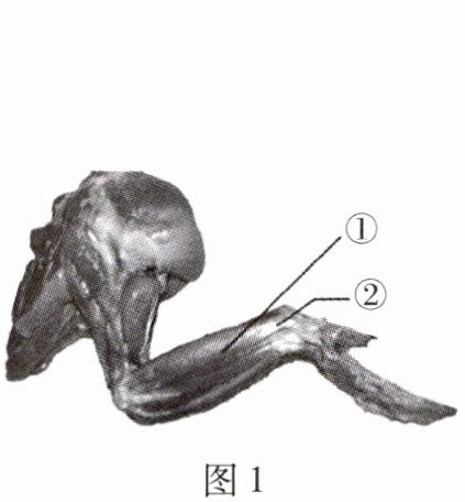 (2)观察剪去皮肤的完整鸡翅,如图1所示,肌肉中间较粗的部分称为①