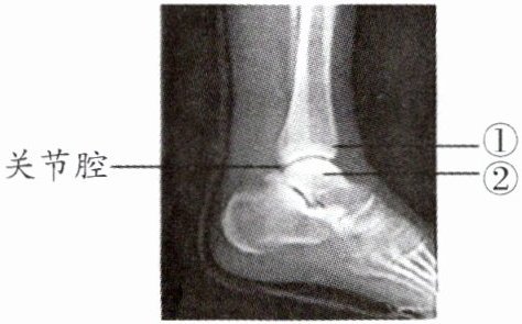 3. 下图为某人左脚的踝关节射线透视图像,①②表示踝关节内的结构。下列说法
