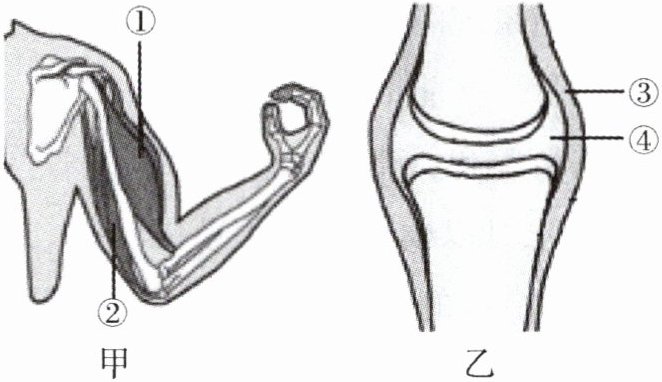 (2)关节的结构特点使运动更加灵活。如图乙,关节周围由③