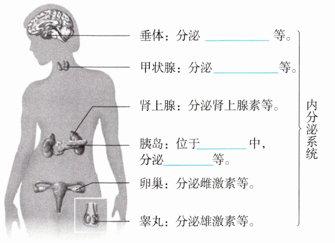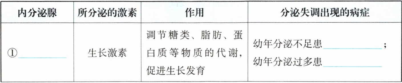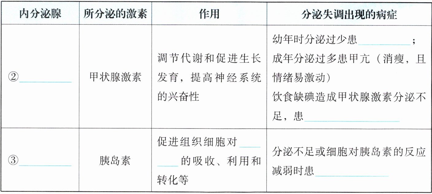 (二)1.(1)①垂体 侏儒症 巨人症 ②甲状腺 呆小病 地方性甲状腺肿 ③胰岛