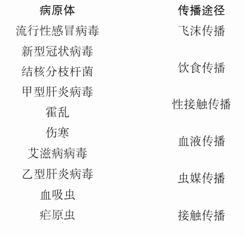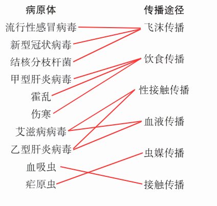 3. 常见病原体的主要传播途径(请将病原体与传播途径进行连线)。