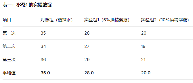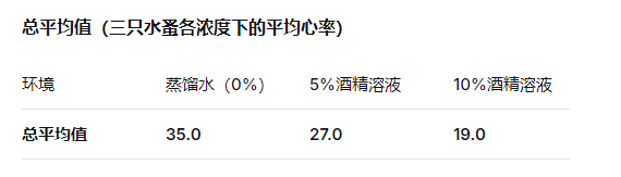 3. 得出结论:高浓度的酒精对水蚤的心率有作用