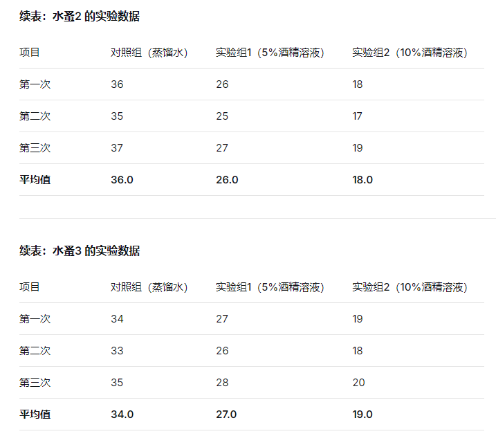 (二)酒精对水蚤的心率有影响。