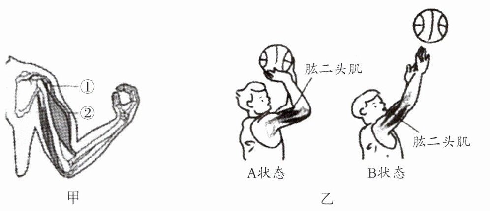 3. 下图中,图甲表示屈肘动作,图乙表示投篮动作。相关叙述正确的是(