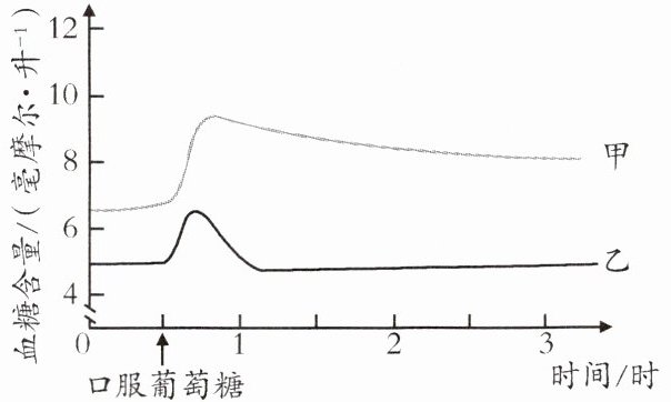 4. 有一位某种激素分泌异常的患者,下图是他与正常人在空腹时口服葡萄糖前后糖检测结果。据此推断,患者和他分泌异常的激素可能是(