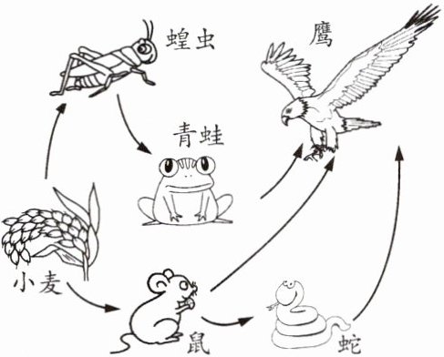 6. (1)小麦 (2)青蛙→蛇 (3)分解者 非生物部分 (4)生态系统遭到破坏