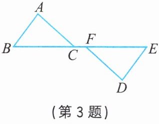 3. 如图,点$B,C,F,E$在同一条直线上,$AC = DF,AB = DE$。要使$\triangle ABC\cong\triangle DEF$,且判定的依据是“SSS”,还需添加一个条件,这个条件可以是