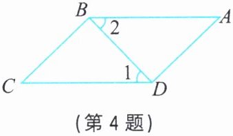 4. 已知:如图,在四边形$ABCD$中,$AB = CD,AD = CB$。求证:$\angle 1 = \angle 2$。