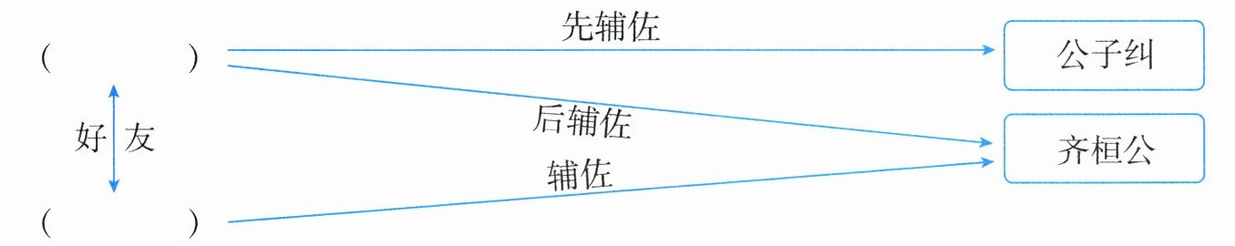1. 管仲 鲍叔牙 管仲和鲍叔牙的深厚情谊 交情深厚的朋友 2. 管仲 鲍叔牙 3. A 4. 鲍叔牙和管仲一起做生意,管仲比鲍叔牙拿到的钱多,鲍叔牙知道他是为了奉养母亲;管仲打仗退缩,鲍叔牙知道管仲是要留着命回去照顾老母亲;公子小白(齐桓公)做了国君后,鲍叔牙举荐管仲做宰相,管仲真的让齐国走上了霸主之路。 5. 舍命之交——羊角哀和左伯桃 刎颈之交——蔺相如和廉颇 鸡黍之交——范式和张劭 忘年之交——孔融和祢衡