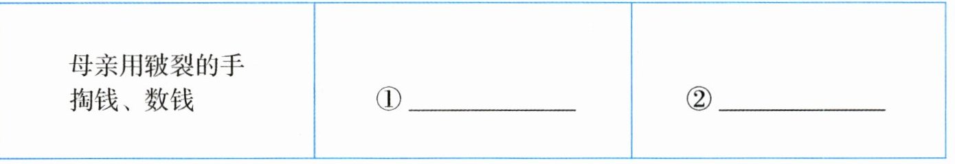 ①母亲塞钱给“我” ②母亲又陷入忙碌状态