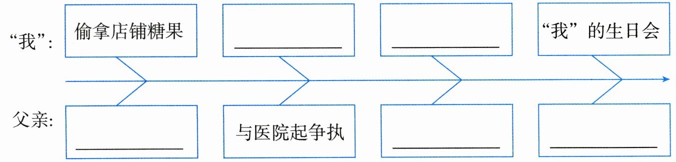 1. 梳理文中父亲和“我”之间难忘的场景,填写在相应的方框里。