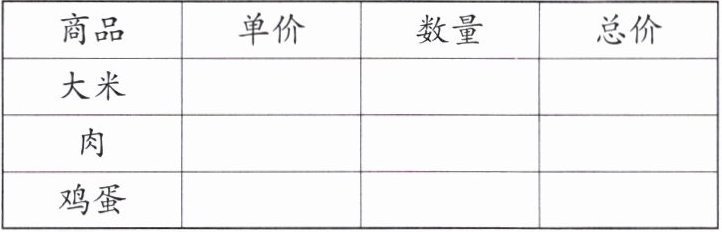 1. 妈妈带 100 元钱去超市购物。她买了 2 袋大米,每袋 30.6 元;还买了 0.8 kg 肉,每千克 26.5 元。剩下的钱还够买一盒 10 元的鸡蛋吗?还够买一盒 20 元的鸡蛋吗?