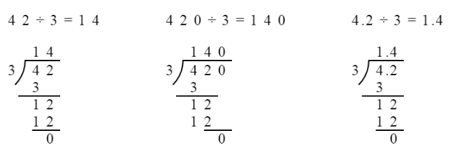 回顾上面的计算,说一说,除数是整数的小数除法与整数除法有什么相同的地方?有什么不同的地方?