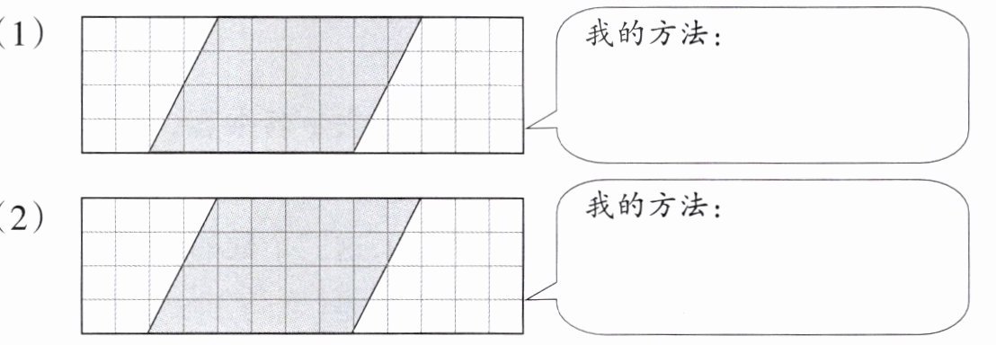 1. 你会用哪些方法求下图中平行四边形的面积?用文字或图形表示。(每个小方格的边长是 1 cm)