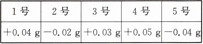 11. 【数学应用】比赛用的乒乓球的质量有严格的规定,但实际生产出来的乒乓球的质量可能会有一些误差。检验时,通常把比标准质量小的克数记为负数,把比标准质量大的克数记为正数,请你根据以下记录,选出质量最接近标准质量的乒乓球。