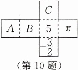10. 【数学游戏】如图所示的是一个正方体形纸盒的表面展开图,按虚线折成正方体后,若使相对面上的两个数互为相反数,则 A,B,C 表示的数依次为______。