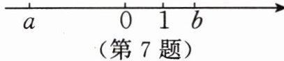 7. 有理数$a$,$b$在数轴上对应点的位置如图所示,则$b-a$______$0$。(填“$>$”“$<$”或“$=$”)