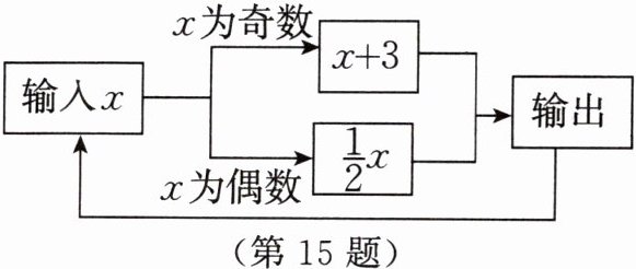 15. 【数学游戏】有一数值转换器,原理如图所示。若开始输入的$x的值是5$,可发现第$1次输出的结果是8$,第$2次输出的结果是4……则第2026$次输出的结果是______。