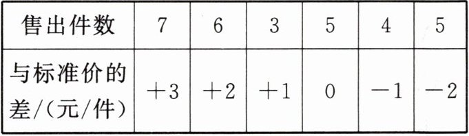 |与标准价的差/(元/件)|$+3$|$+2$|$+1$|$0$|$-1$|$-2$|