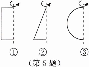 5. 如图,请你写出下列平面图形绕虚线旋转一周后得到的几何体的名称。