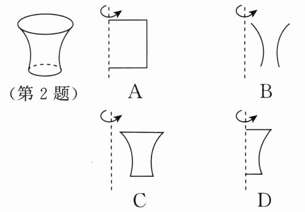 2. 下图是由选项( )中的图形绕虚线旋转一周得到的。